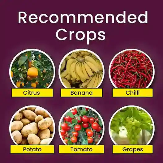- Suitable for crops like Citrus, Chilli, Banana, Tomato, Coffee, and other fruits & vegetables.